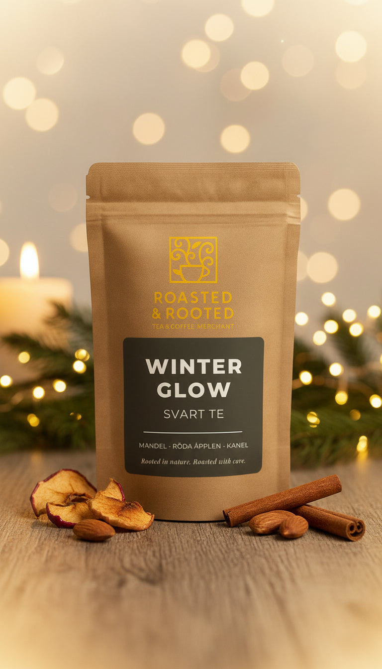 Winter Glow är ett te som fångar essensen av en klar vinterkväll — där krispiga äpplen möter frisk citrus och värmen från kanel och söt mandel.