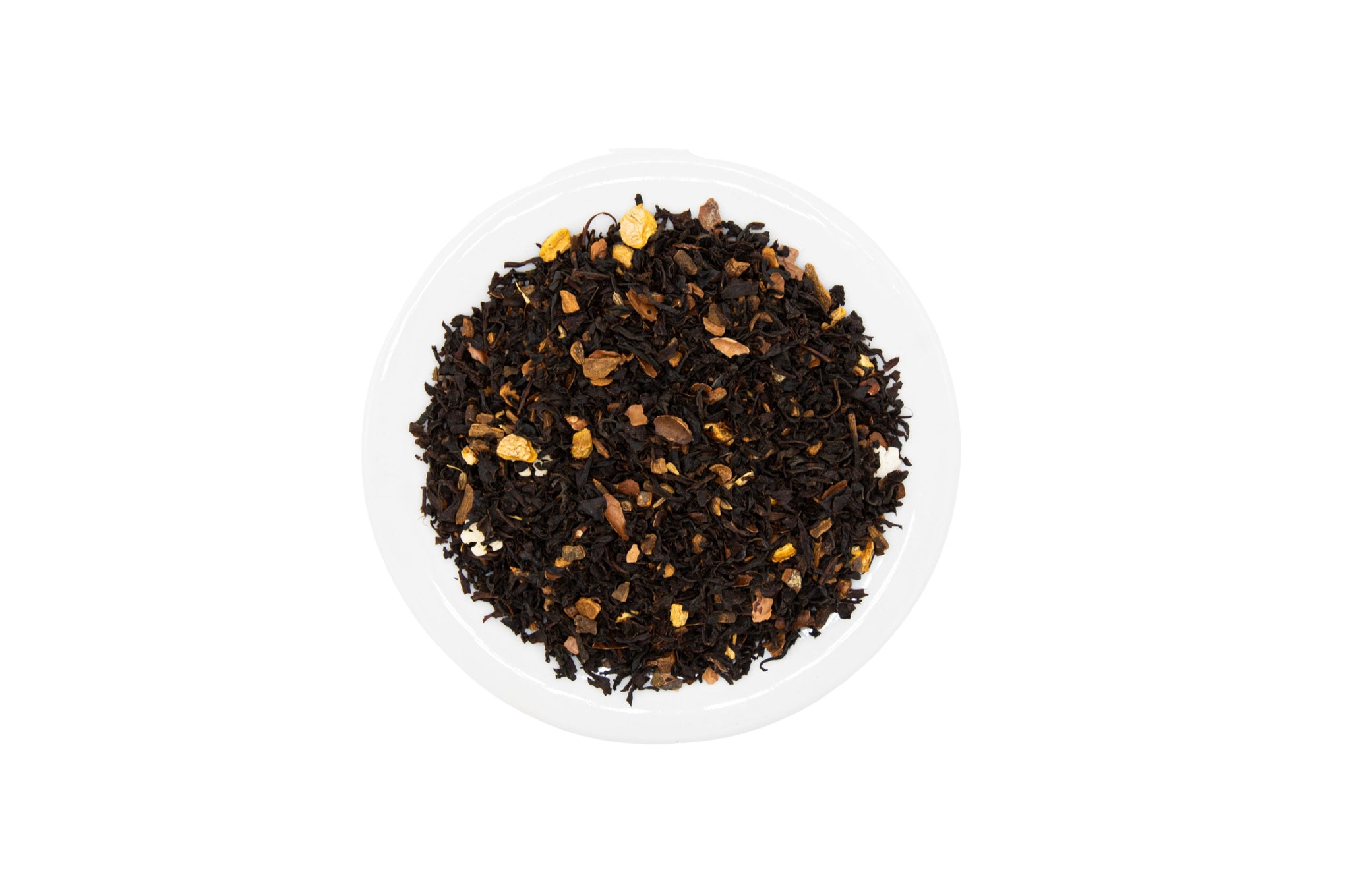 Svart te (Ceylon & Kina), äpplebitar, apelsinskal, mandel, kanel, citrusarom, kryddor.